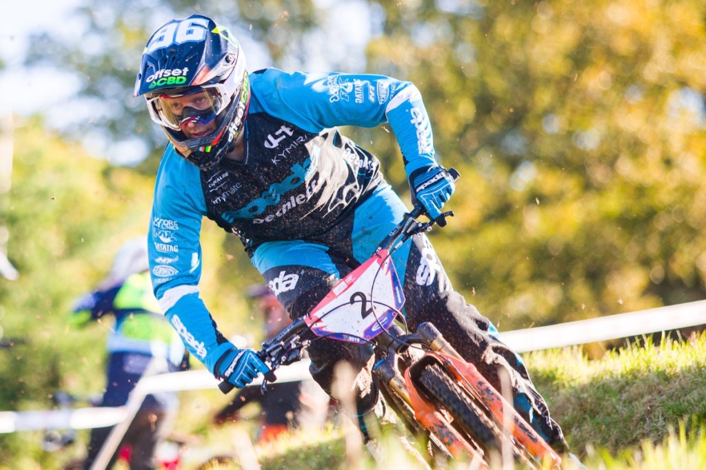 Arriving back at the track on Sunday, the weather was incredibly different. Blue skies, sunshine and zero wind would provide perfect conditions for racing, however the damage to the track had been done during Saturday’s storm! The track was saturated and it was going to remain pretty muddy for most of the day. No problem for us though as our Schwalbe Dirty Dan tyres are simply supreme in these conditions so Scott was feeling confident.