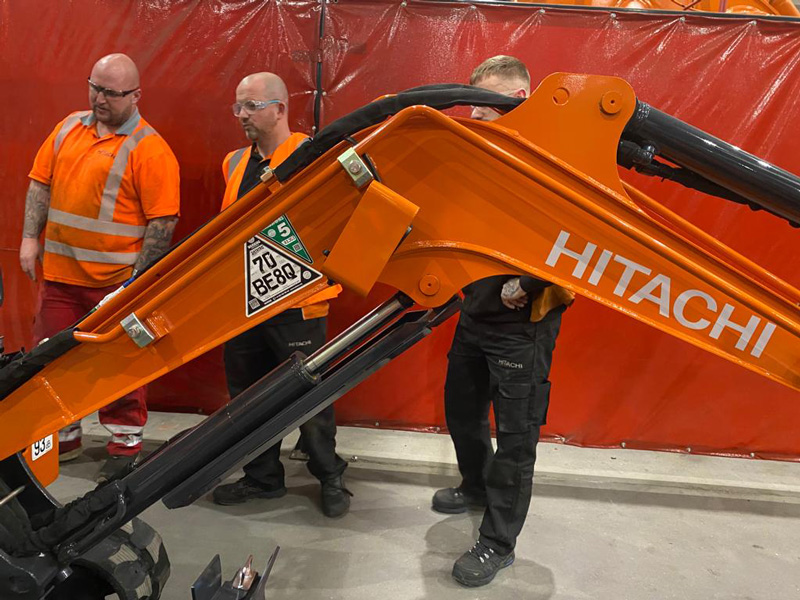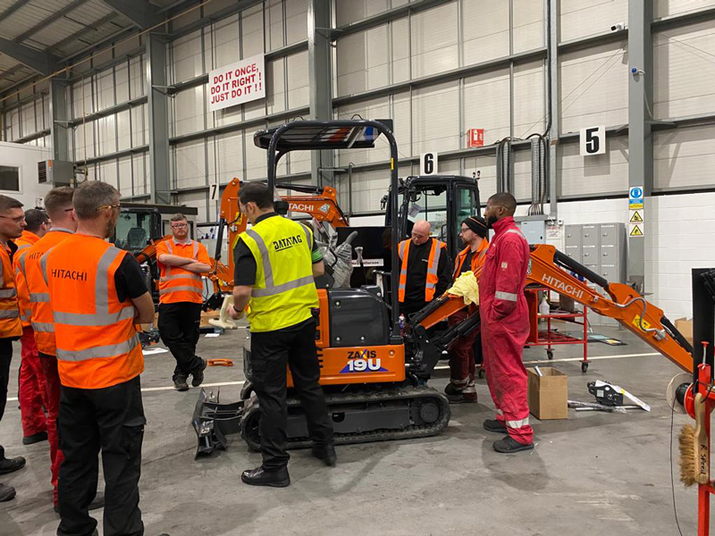 Onsite with Hitachi Construction Machinery (UK) Hebburn, Tyne and Weir, our very own Datatag ID Ltd team Vincent Lane and Rachel Hamilton, who are training 23 employees to fit CESAR ECV correctly.