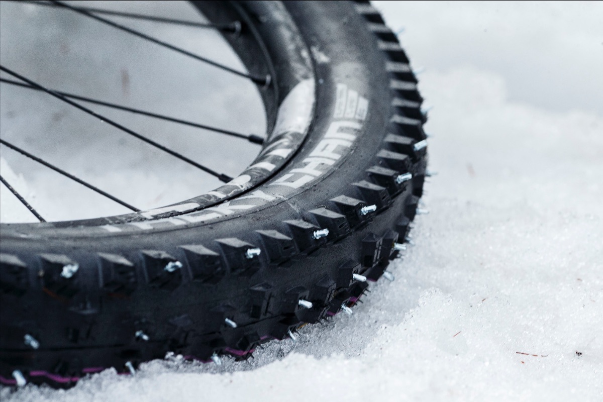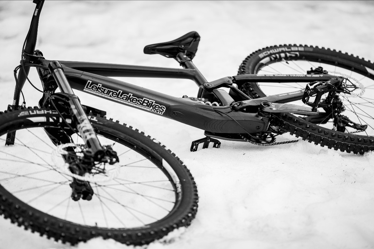 Next it was a focus on Scott’s Leisure Lakes Race Bike. His Specialized Enduro training bike was transformed into a snow bike racing weapon! The major change were the Schwalbe tyres. Having zero experience (like most of the riders at this event), Scott was pulling on his knowledge and experience ahead of this event. He chose to prepare Schwalbe Tacky Chans with metal spikes and then take a set of traditional Dirty Dans for traditional rubber tyres.