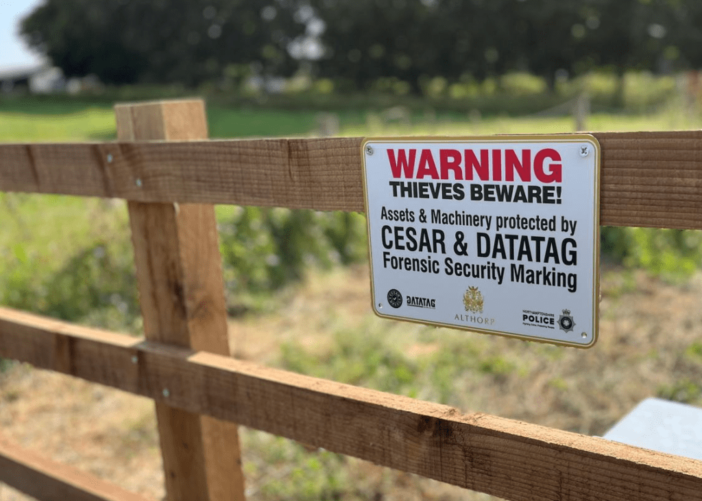 Robin Edwards from Sharmans Agricultural, the local CESAR dealer, installed CESAR and Datatag technologies. Lastly, bespoke warning signs were installed around the Estate to re-emphasise that the equipment has been protected by CESAR and Datatag, adding an extra layer of deterrence.