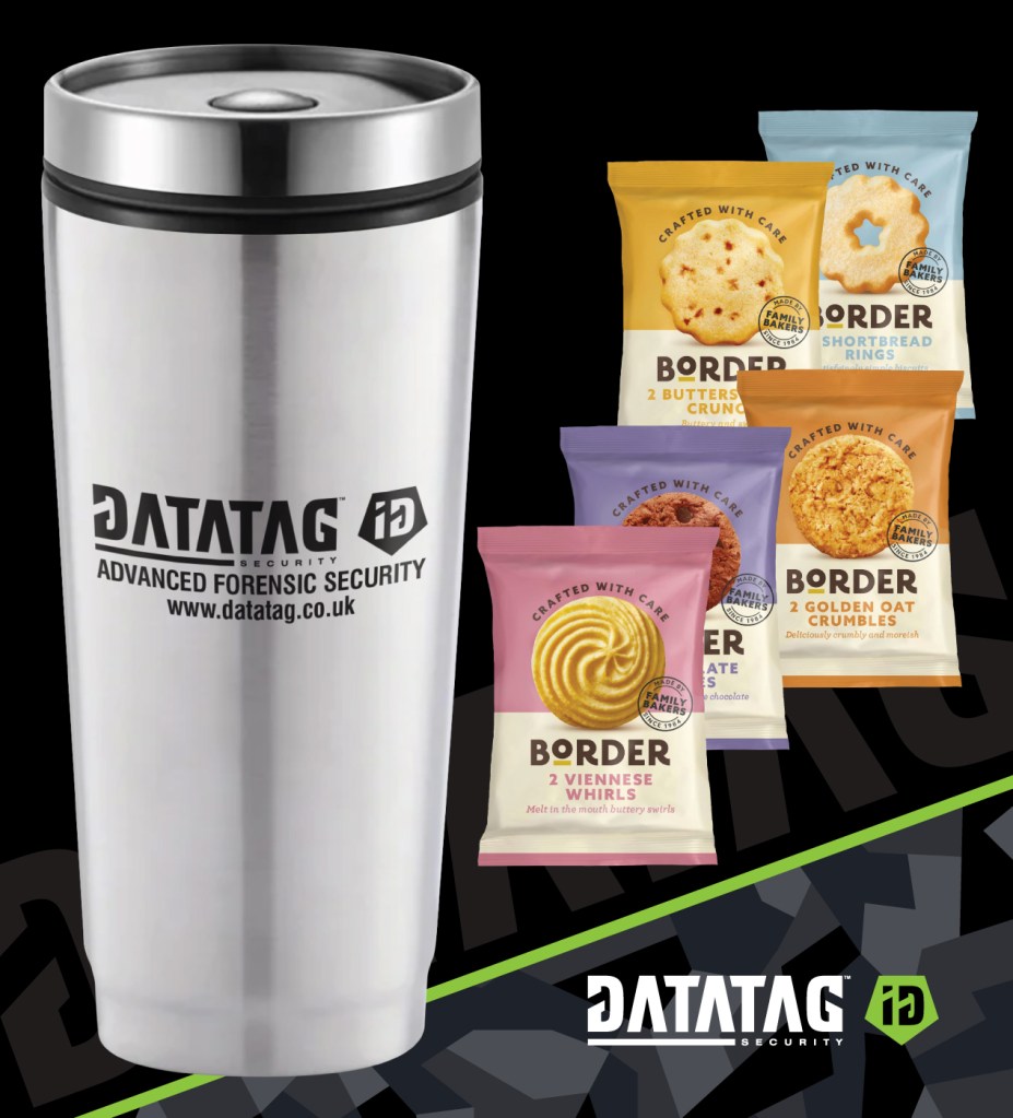 As a special bonus, every purchase made at Toolfair London will come with a FREE Datatag Thermos Mug & Biscuits – because securing your tools should come with a warm drink and a treat!