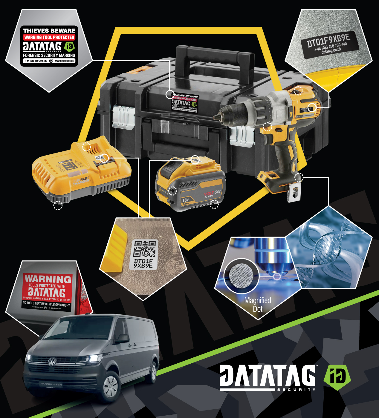 Datatag is excited to announce the launch of its brand-new Multi Power Tool Forensic Security System at the upcoming Toolfair London 2025! This cutting-edge security solution is designed to combat the rising threat of power tool theft, giving tradespeople and businesses peace of mind.